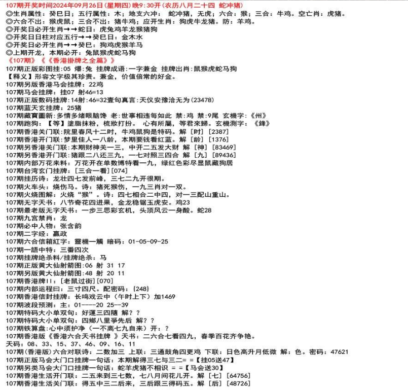 111期开奖时间2022年12月29日(星期四) 晚9:30开 (腊月初七 龙冲狗)